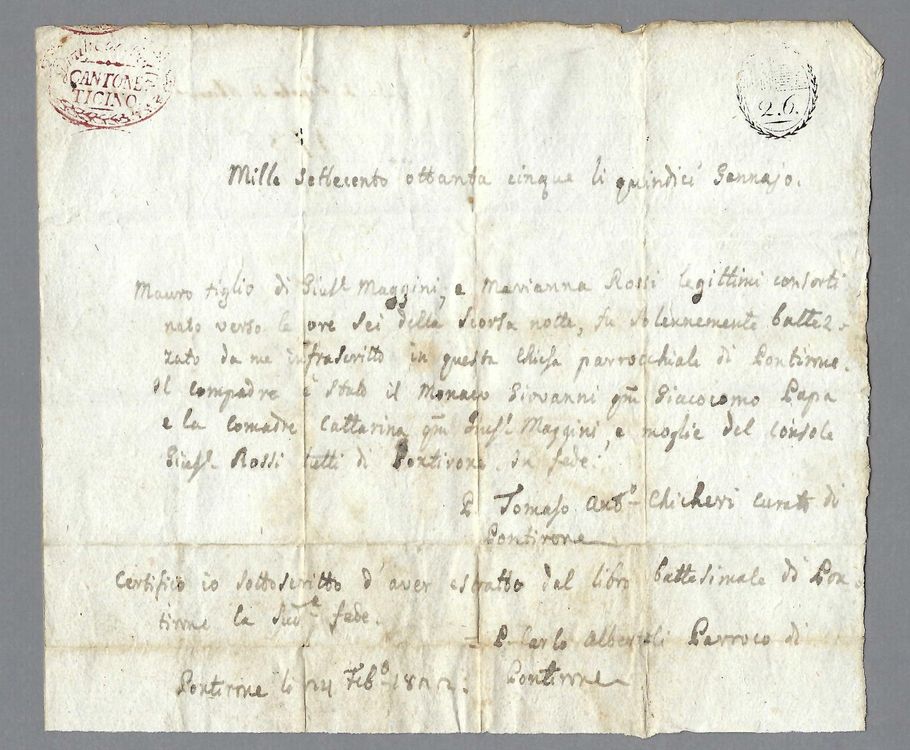 1784 1785 VAL PONTIRONE DUE DOCUMENTI NON COMUNE (Usato) a Pura per
