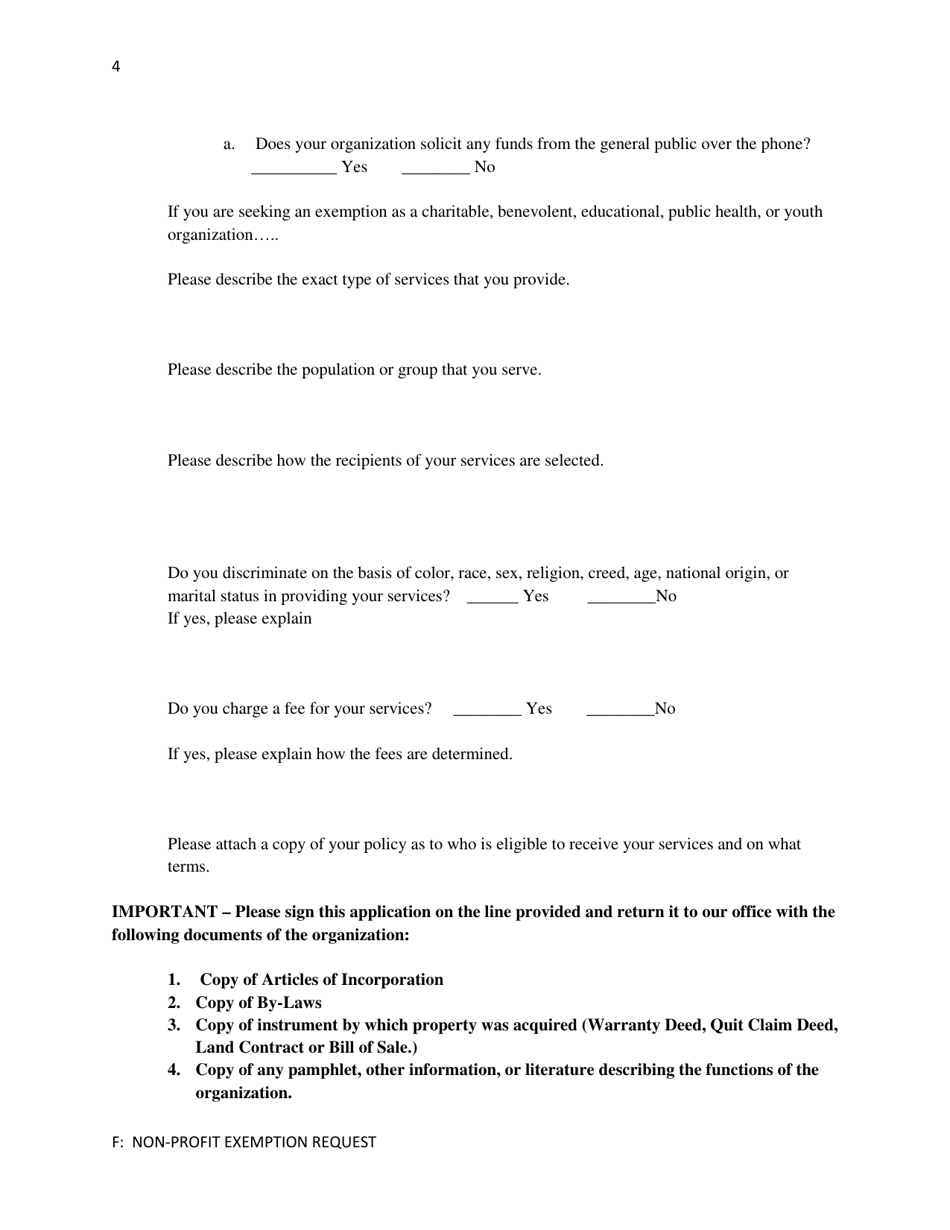 Blackman Charter Township Michigan Non profit Exemption Request Fill