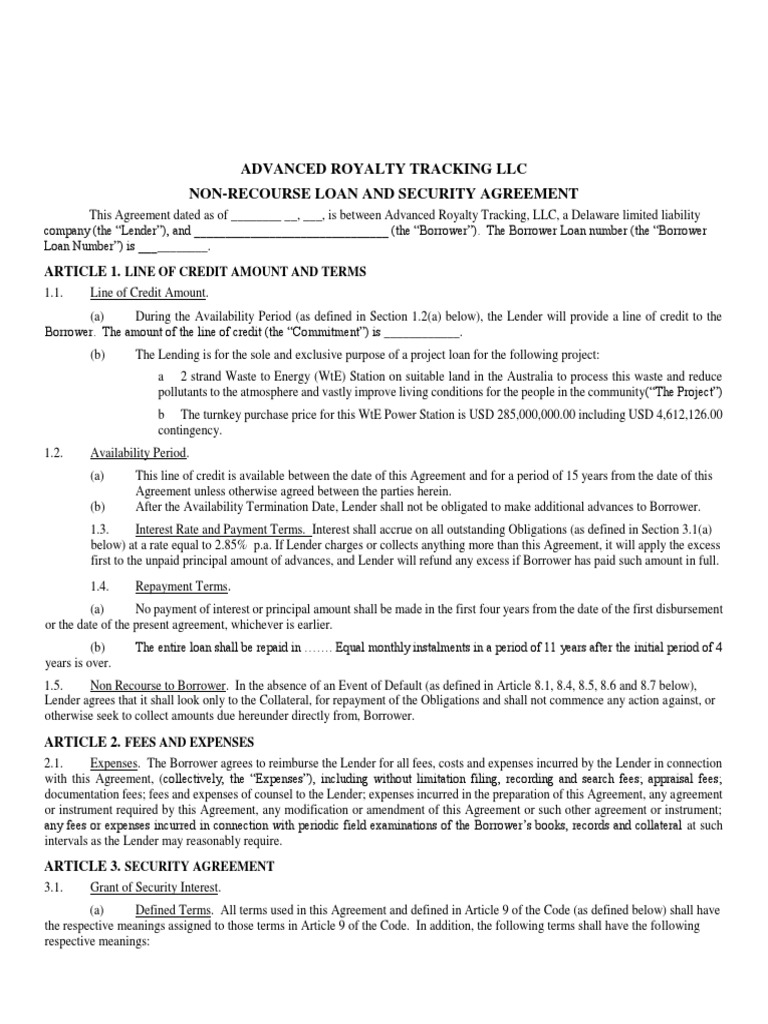 Non Recourse Loan Agreement Sample PDF Security Interest Loans