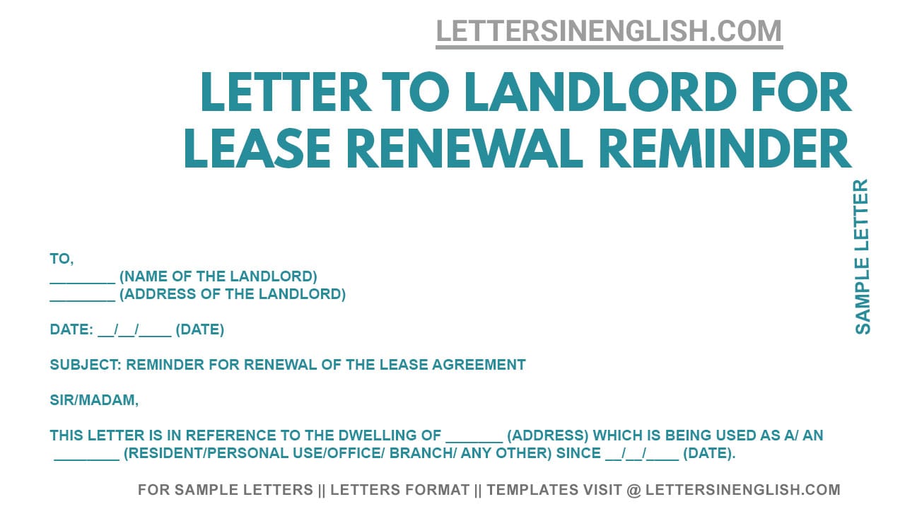 Lease Renewal Reminder Letter Sample Letter to Landlord for Lease