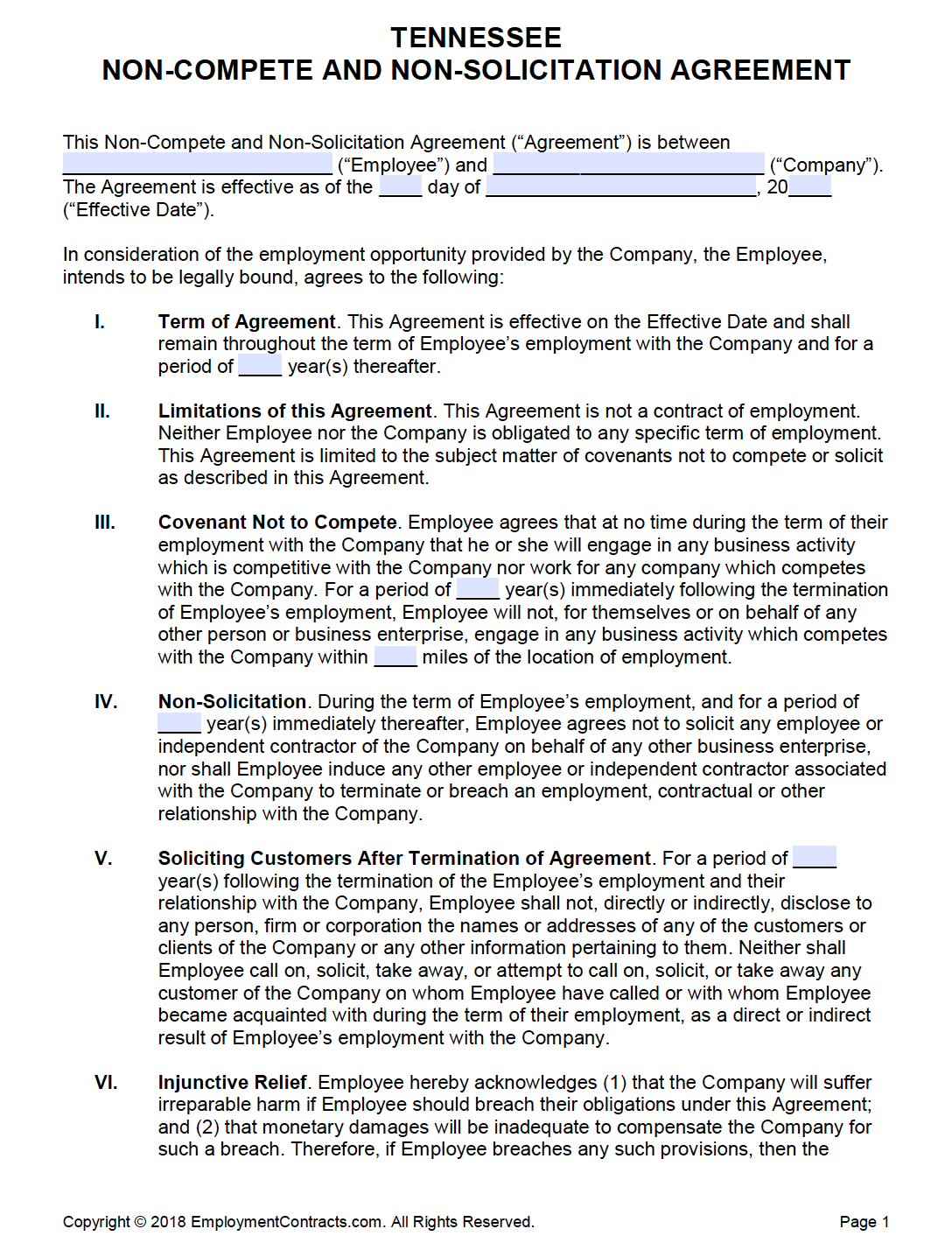 Tennessee Non Compete Non Solicitation Agreement PDF Word