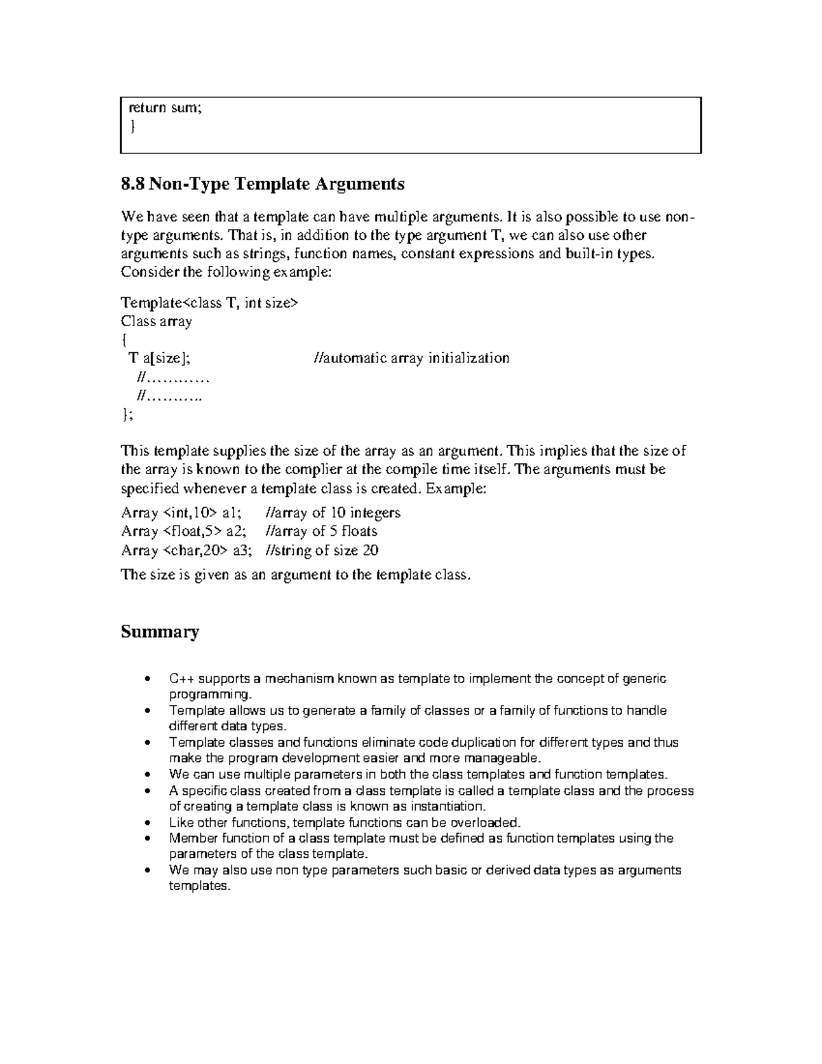 Solved 1 Nontype parameter Class that is a type specific Chegg com