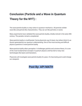 Most Recently Updated Particle and a Wave in Quantum Theory for the NYT