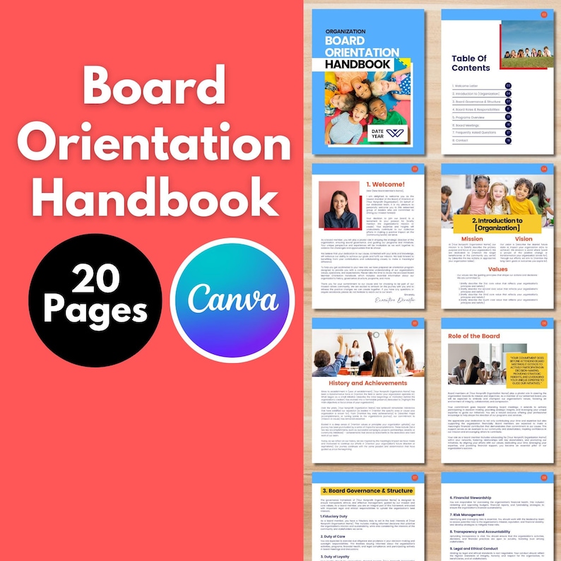 BOARD ORIENTATION MANUAL Template Canva Board of Directors Board