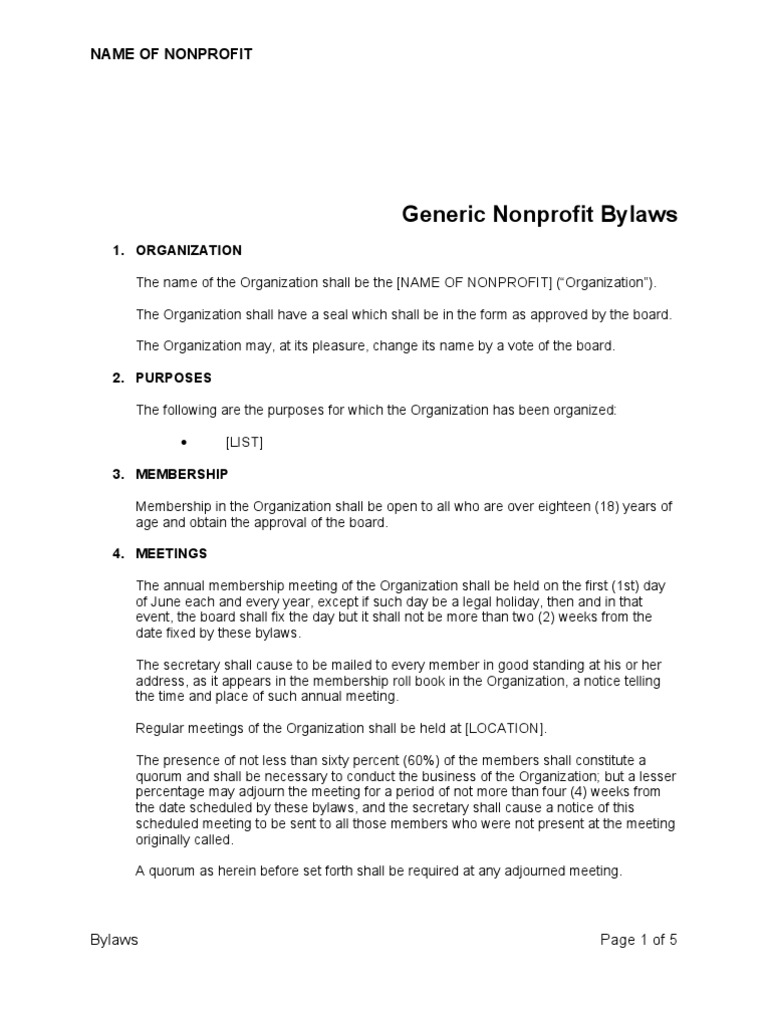 Generic Nonprofit Bylaws Board Of Directors Quorum