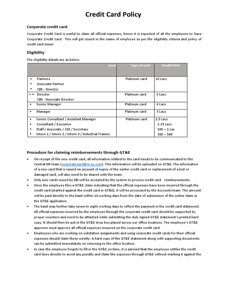 Corporate Credit Card Policy Examples Template 2 : Resume Examples #