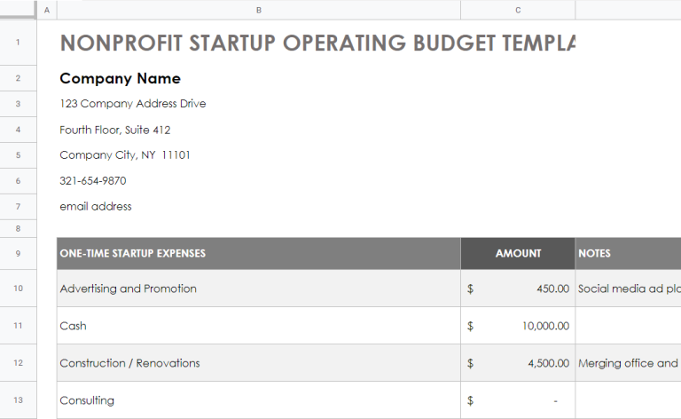 Free Nonprofit Operating Budget Google Sheets Excel Template net