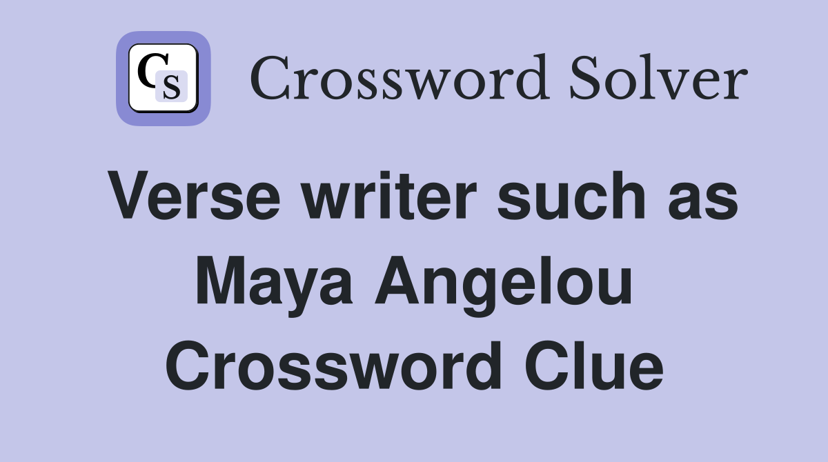 Verse writer such as Maya Angelou Crossword Clue Answers Crossword