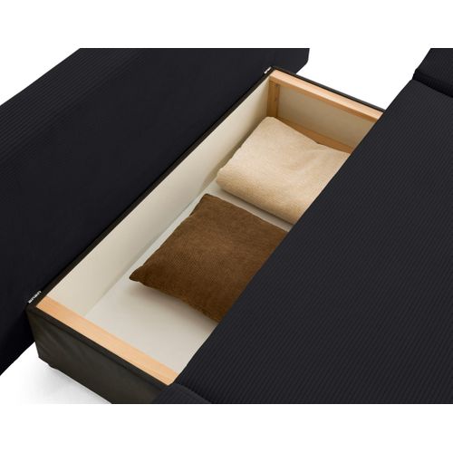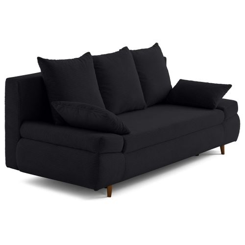 Canapé Droit Convertible 3 Places Larson En Velours Côtelé Noir