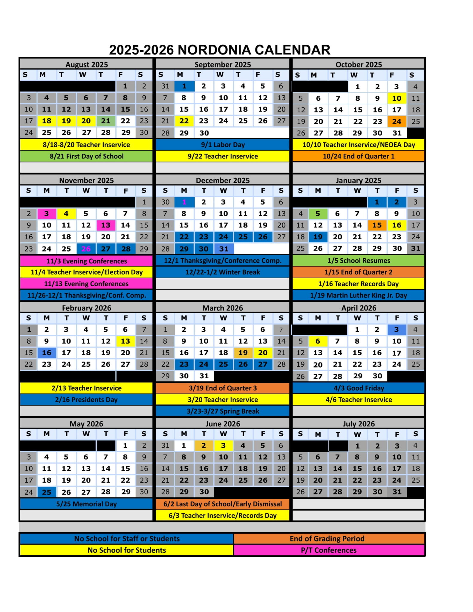 Nordonia Schools Calendar