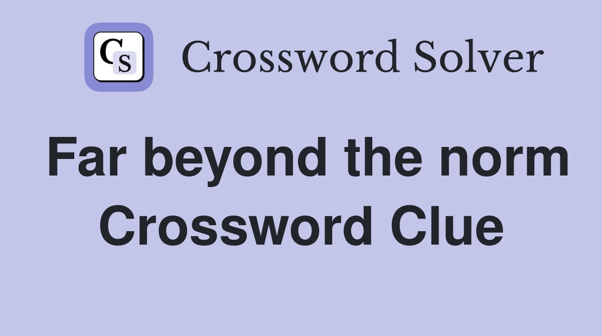 Far beyond the norm Crossword Clue Answers Crossword Solver