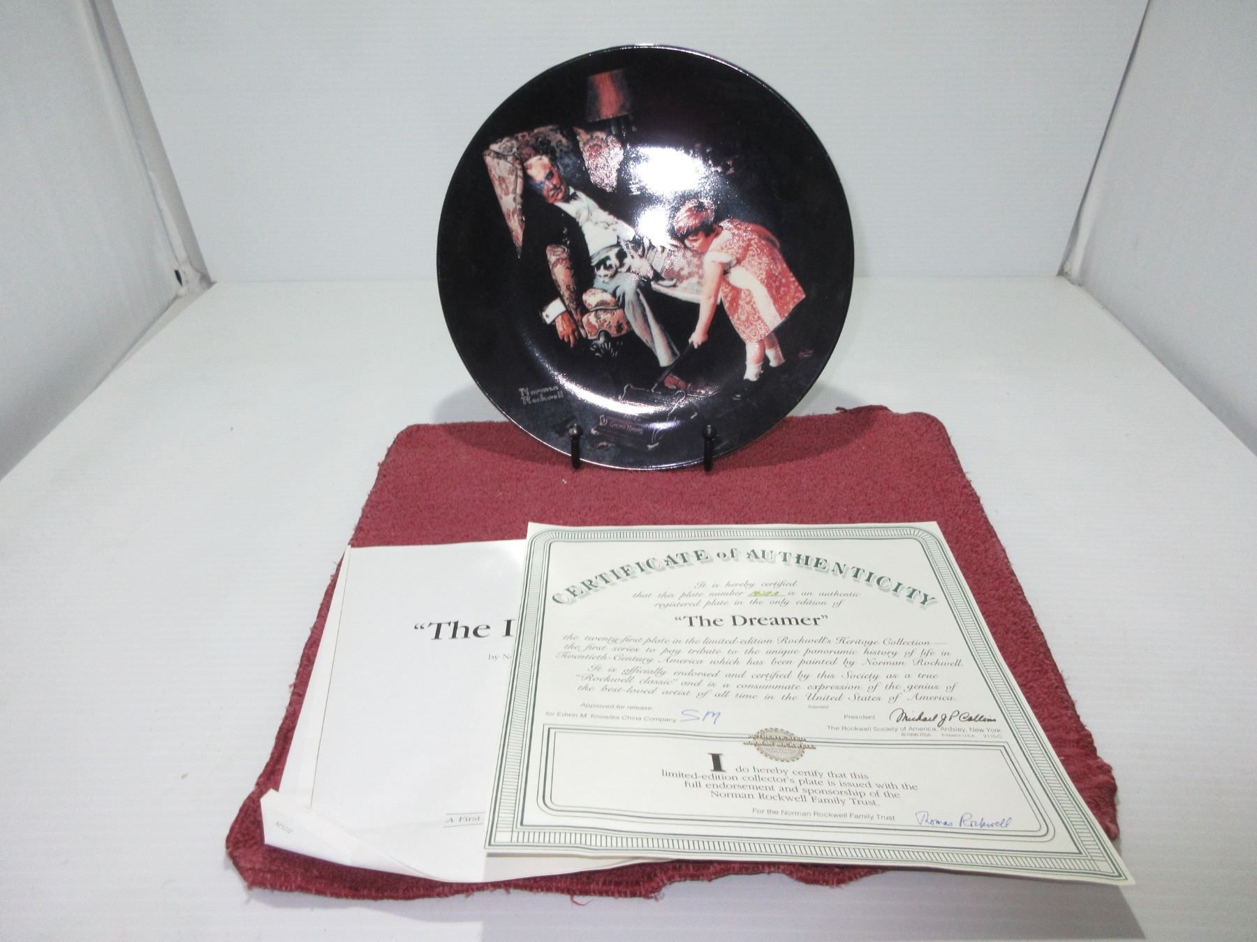 COLLECTOR NORMAN ROCKWELL PLATE quot THE DREAMER quot C/W CERTIFICATE OF