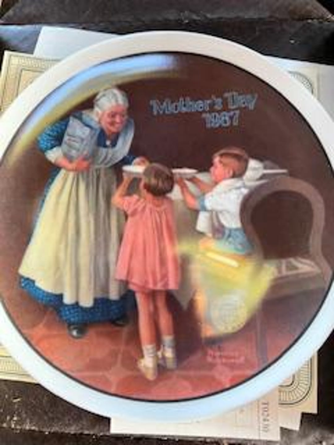 GRANDMA #39 S SURPRISE Knoles Norman Rockwell Plate 1987 With Certificate