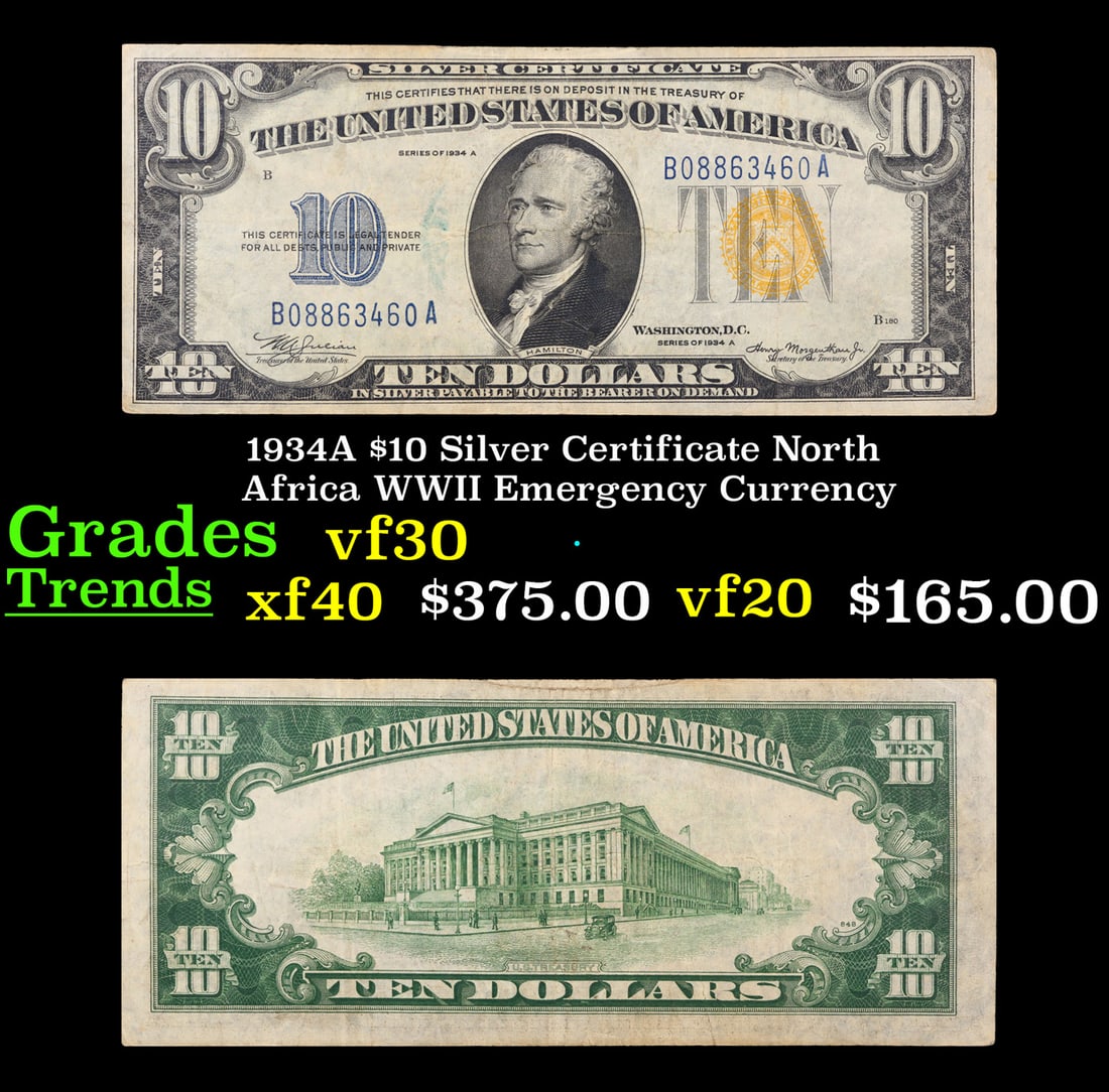 1934A $10 North Africa silver certificate G VG Golden Eagle Coins