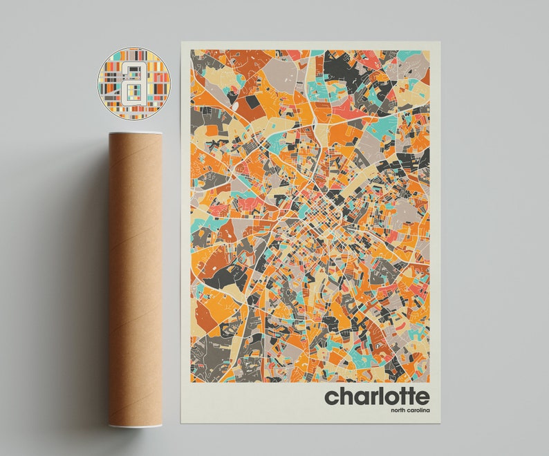 Charlotte Map Print Colorful Map Minimalist Charlotte Print North