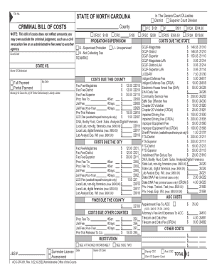 Fillable Online North Carolina Criminal Bill of Costs Nc CriminalUS