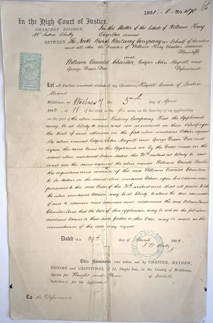 HIGH COURT OF Justice Document: 1882 Wm Charlton v North British