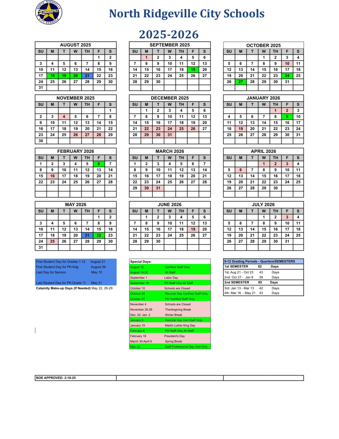 North Ridgeville city schools Calendar 25 26 Revised PDF EduCounty