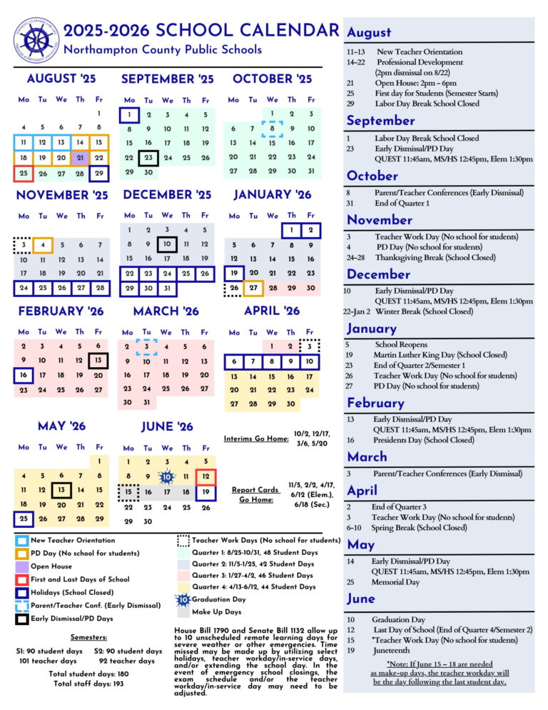 Northampton County Public Schools Calendar Calendar 25 26 Revised PDF