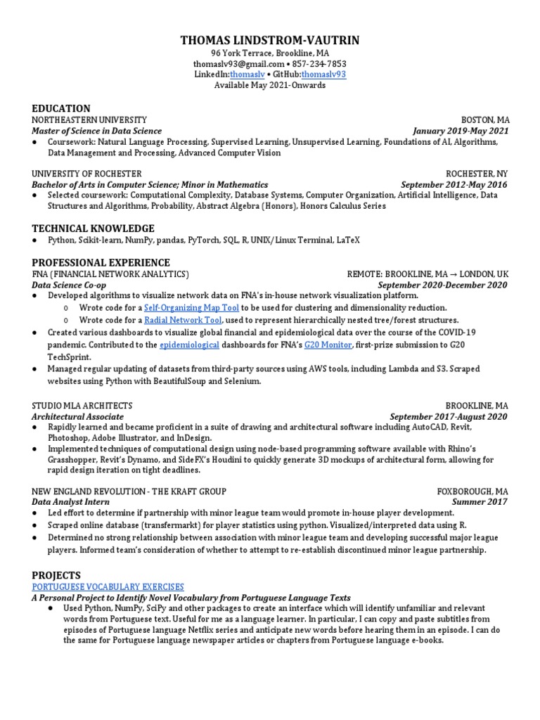 Northeastern Graduate Resume PDF Python (Programming Language