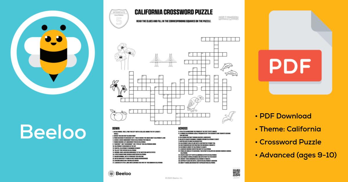 California Crossword Puzzle • Beeloo Printable Crafts and Activities