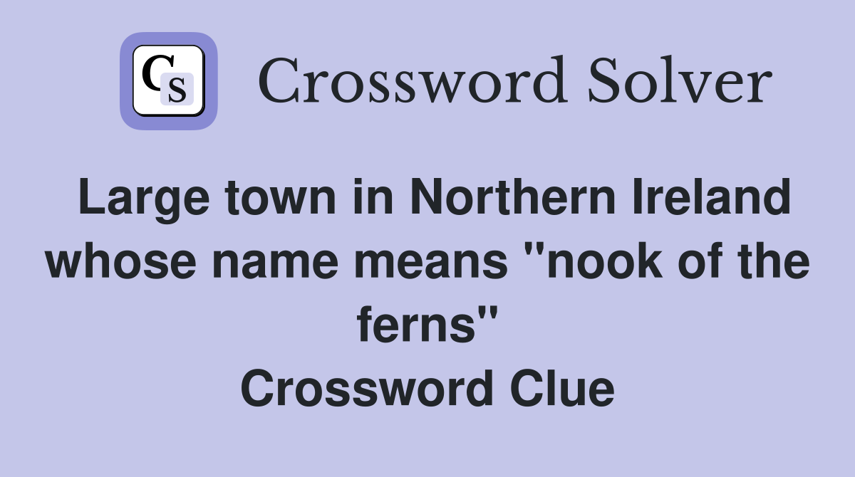 Large town in Northern Ireland whose name means quot nook of the ferns