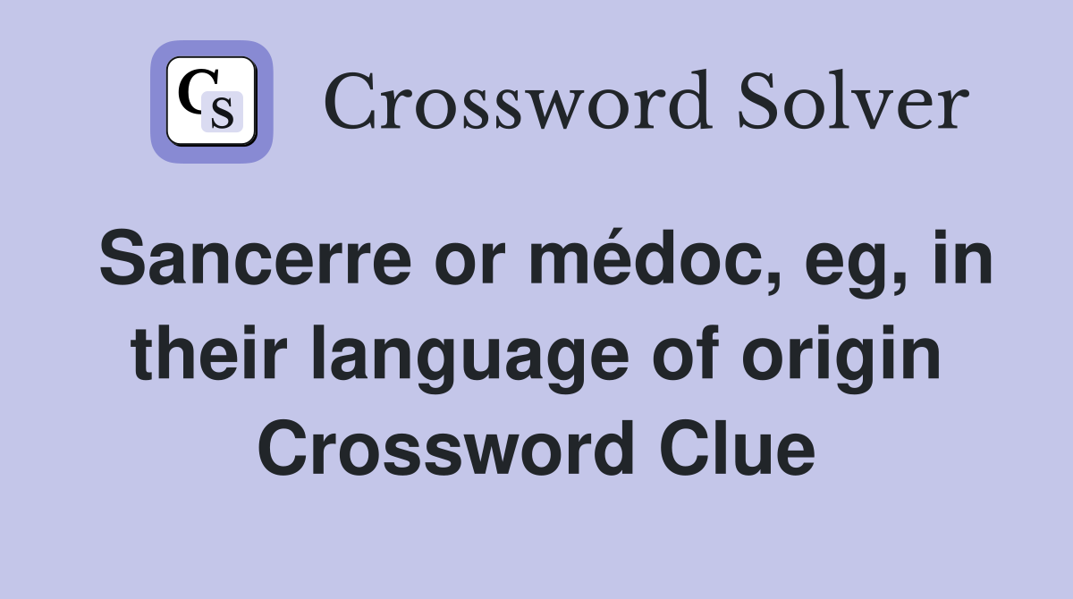 Sancerre or médoc eg in their language of origin Crossword Clue