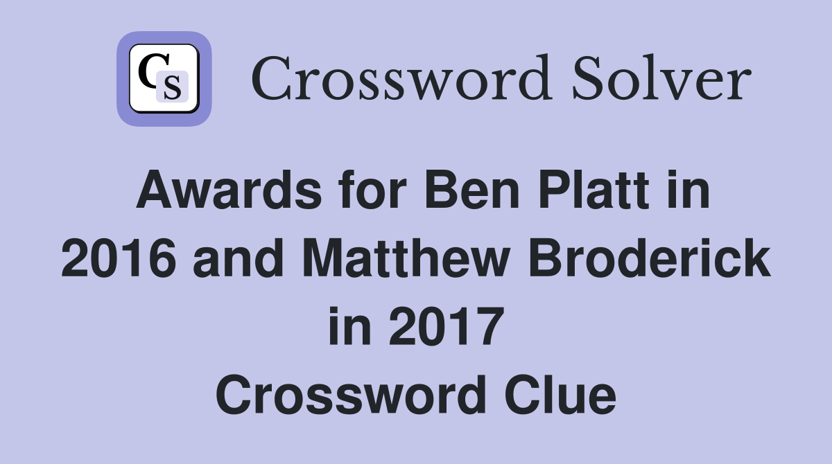 Awards for Ben Platt in 2016 and Matthew Broderick in 2017 Crossword