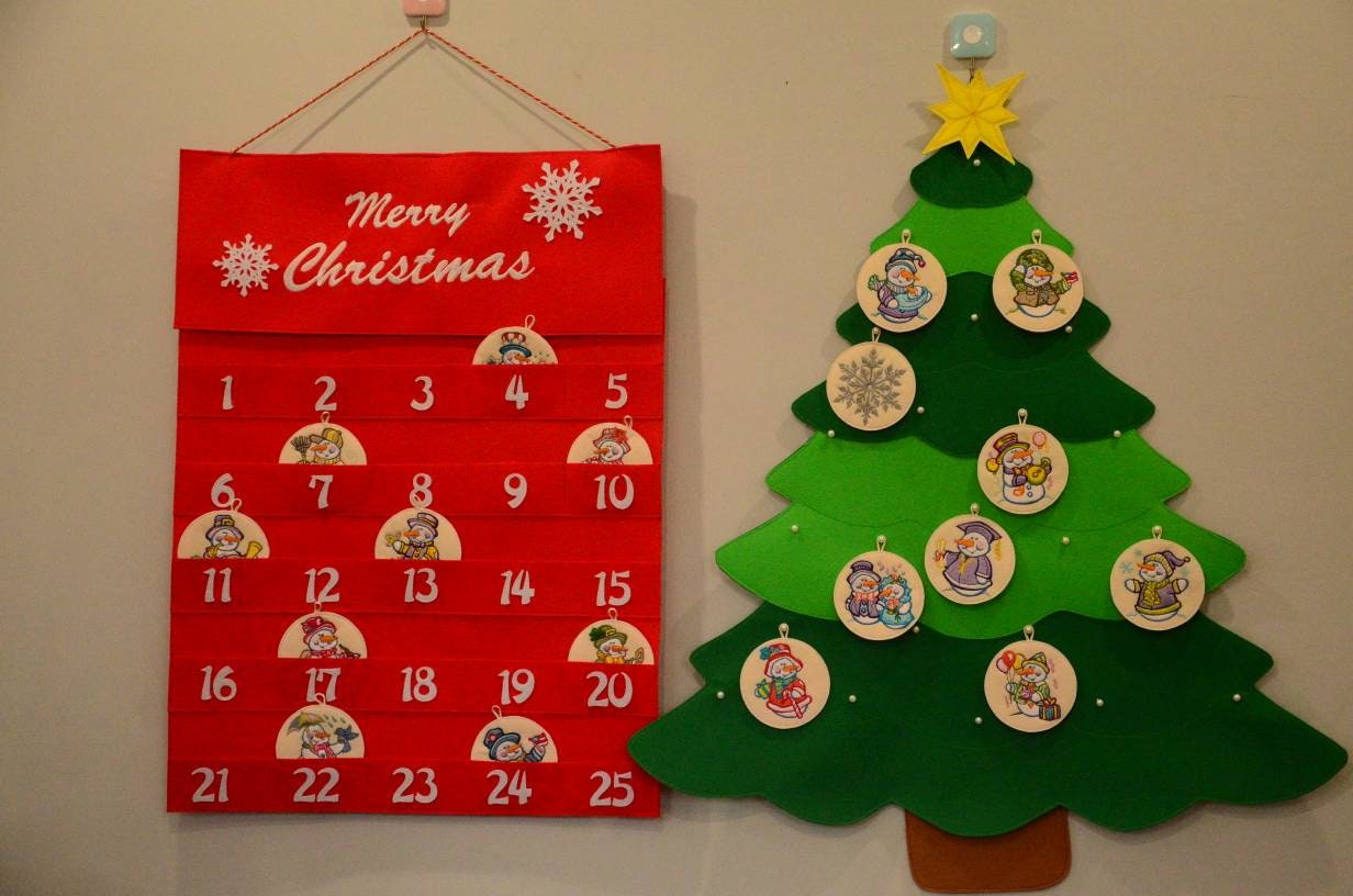 Norwegian Advent Calendar With Pockets Santa Claus Calendar Wall