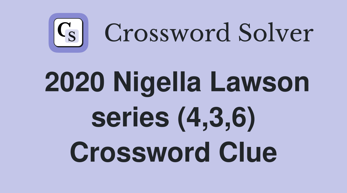 2020 Nigella Lawson series (4 3 6) Crossword Clue Answers Crossword