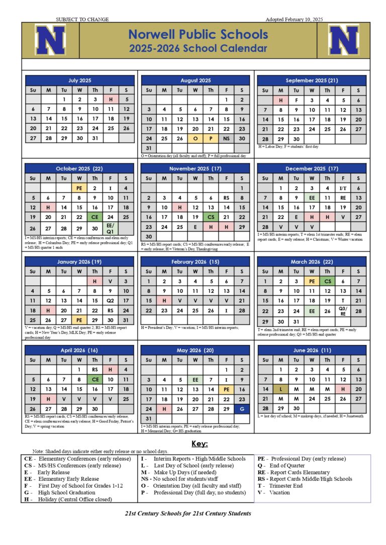Norwell Public Schools MA Calendar 25 26 Revised PDF EduCounty