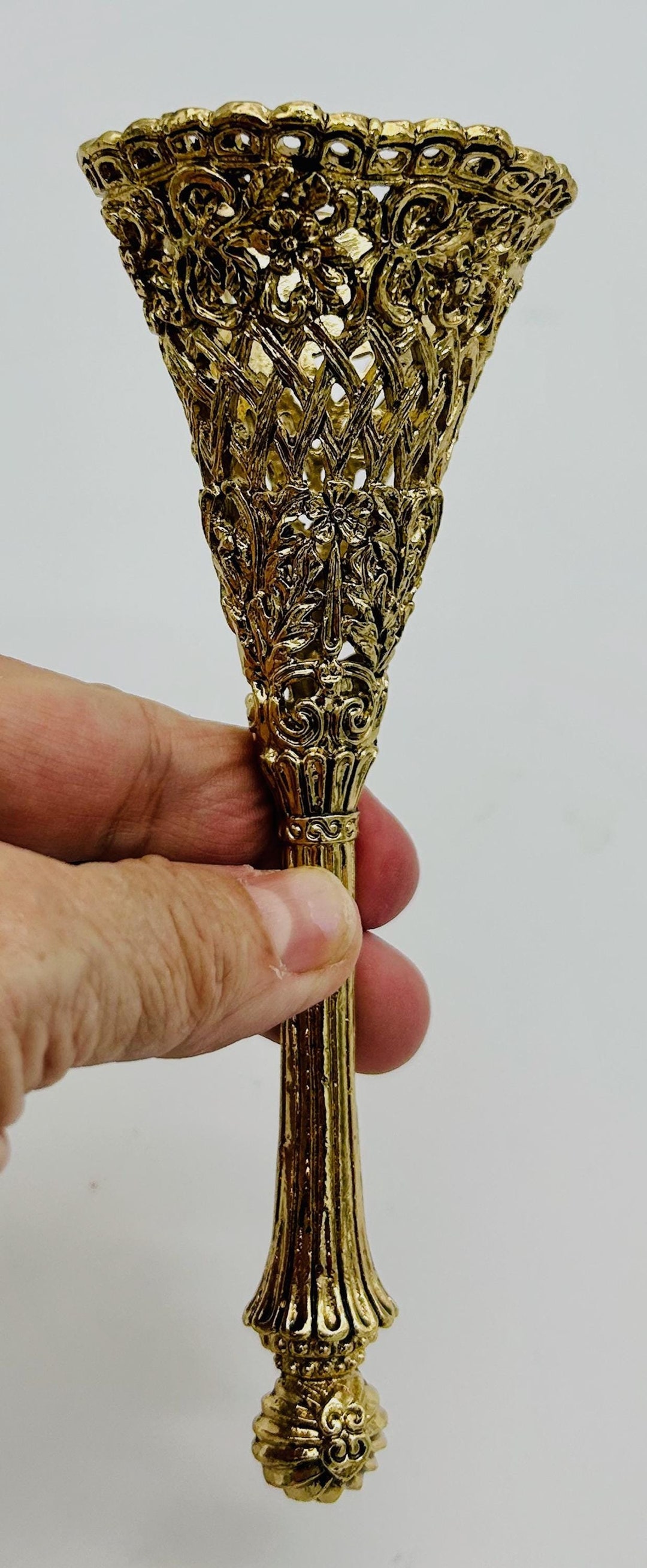Vintage Bouquet Holder 1990s Metal Tussie Mussie Gold Filigree Posy
