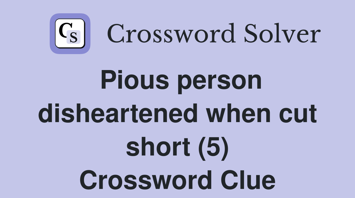 Pious person disheartened when cut short (5) Crossword Clue Answers
