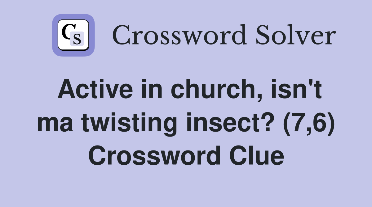 Active in church isn #39 t ma twisting insect? (7 6) Crossword Clue