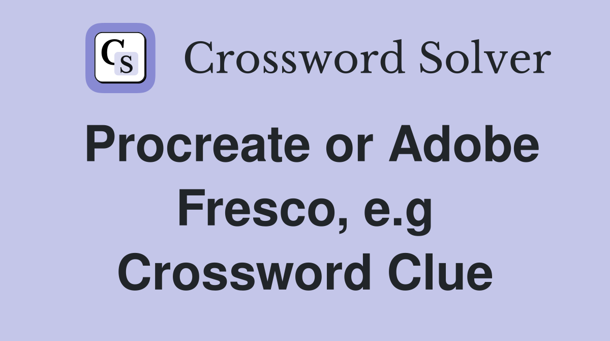 Procreate or Adobe Fresco e g Crossword Clue Answers Crossword Solver