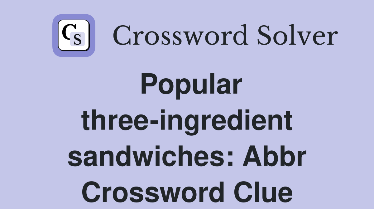 Popular three ingredient sandwiches: Abbr Crossword Clue Answers