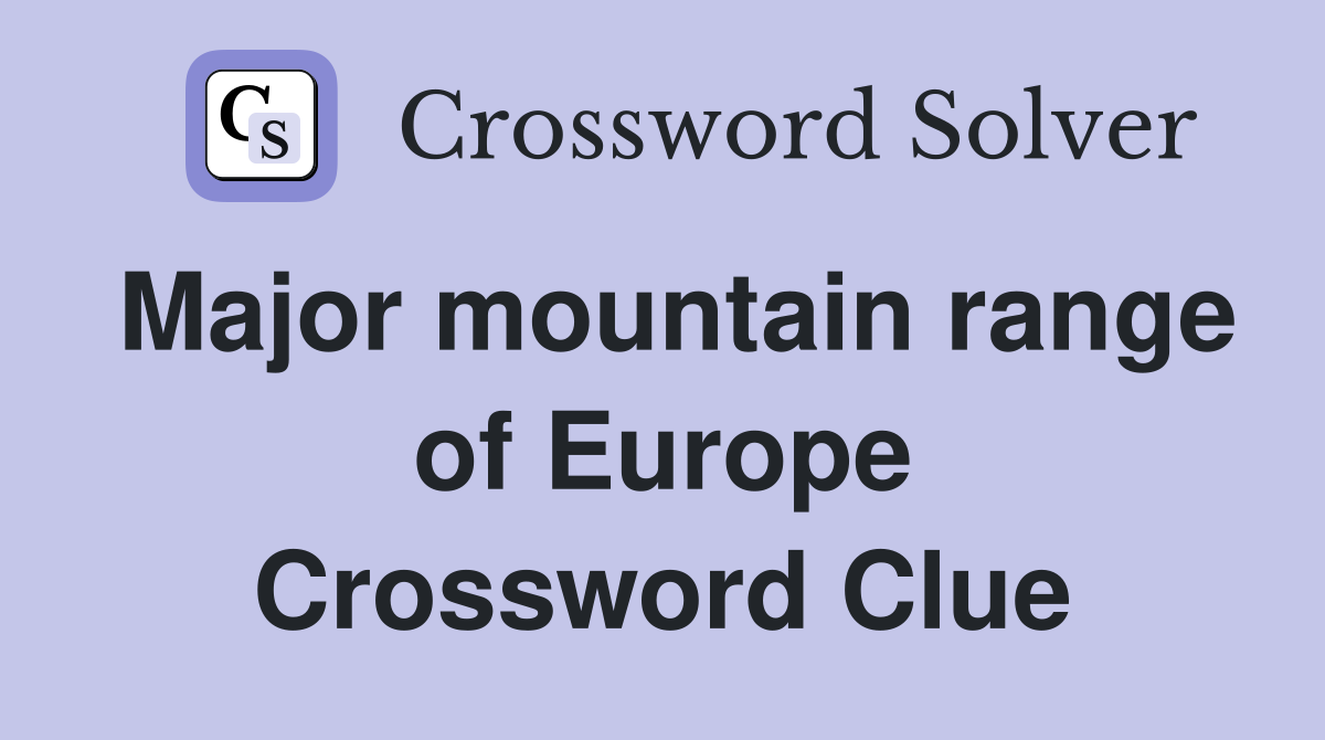 Major mountain range of Europe Crossword Clue Answers Crossword Solver