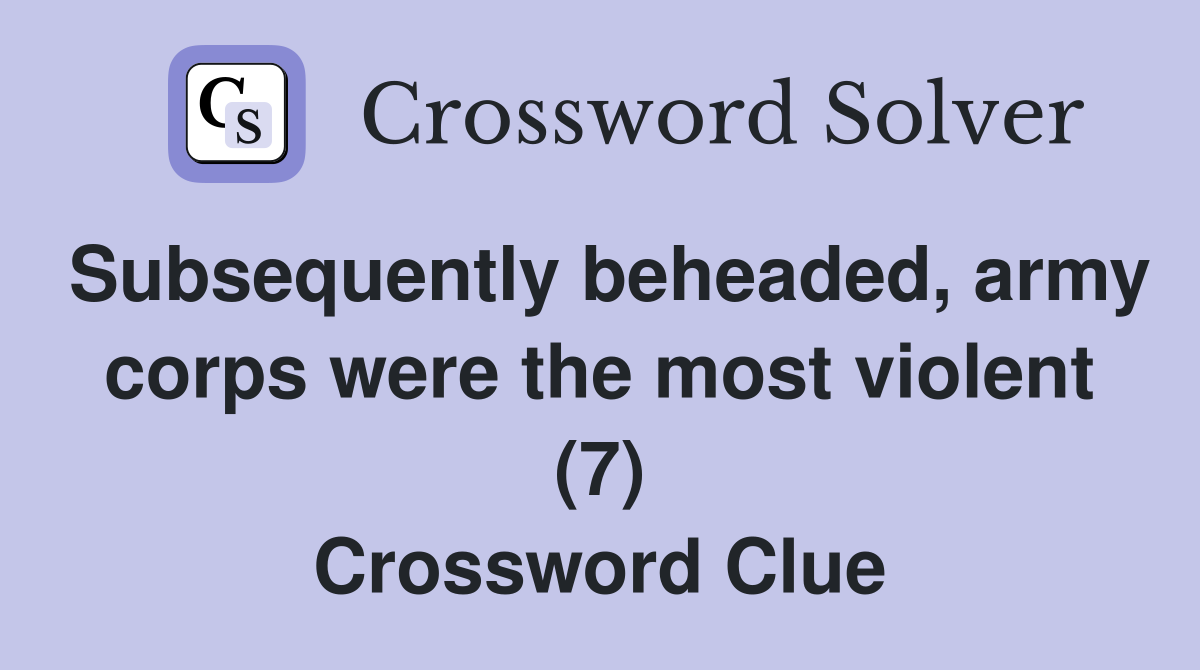 Subsequently beheaded army corps were the most violent (7) Crossword