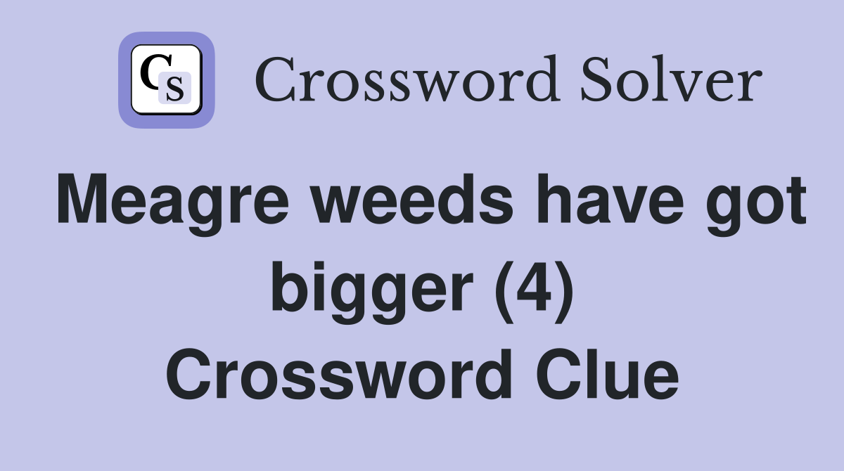 Meagre weeds have got bigger (4) Crossword Clue Answers Crossword