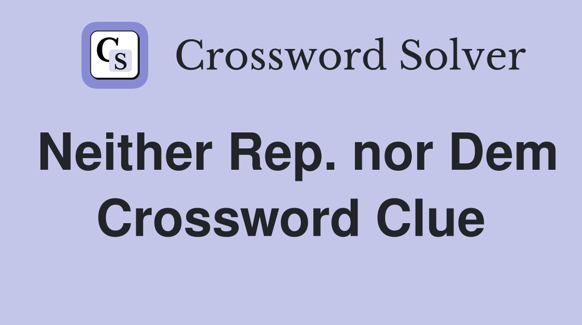 Neither Rep nor Dem Crossword Clue Answers Crossword Solver