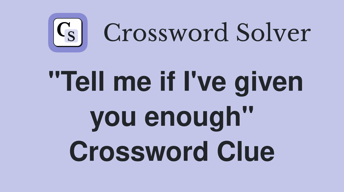 quot Tell me if I #39 ve given you enough quot Crossword Clue Answers Crossword