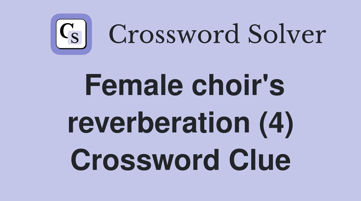 Female choir #39 s reverberation (4) Crossword Clue Answers Crossword
