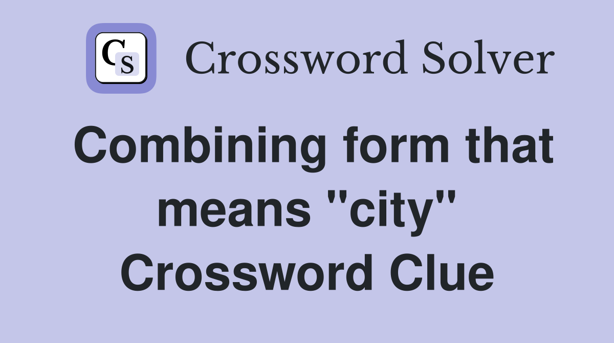 Combining form that means quot city quot Crossword Clue Answers Crossword