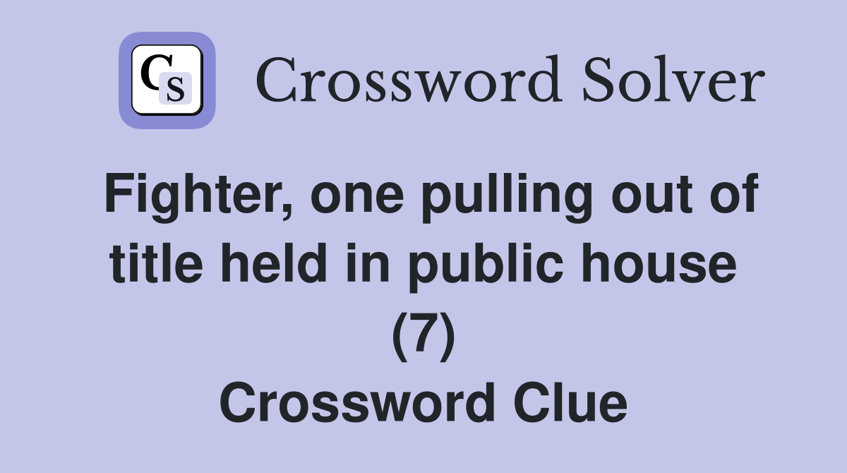 Fighter one pulling out of title held in public house (7) Crossword
