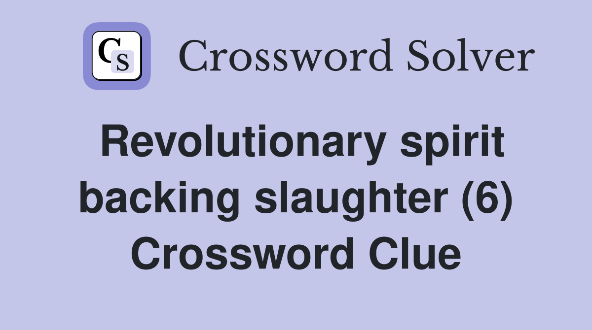 Revolutionary spirit backing slaughter (6) Crossword Clue Answers