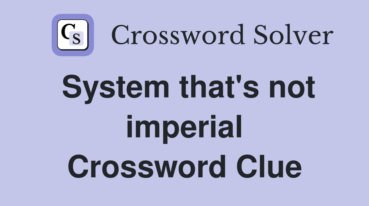 System that #39 s not imperial Crossword Clue Answers Crossword Solver