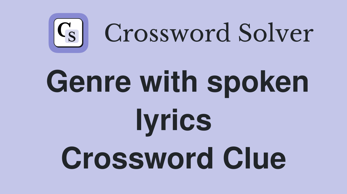 Genre with spoken lyrics Crossword Clue Answers Crossword Solver