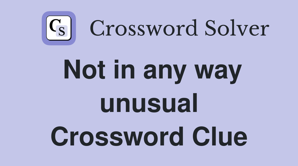 Not in any way unusual Crossword Clue Answers Crossword Solver