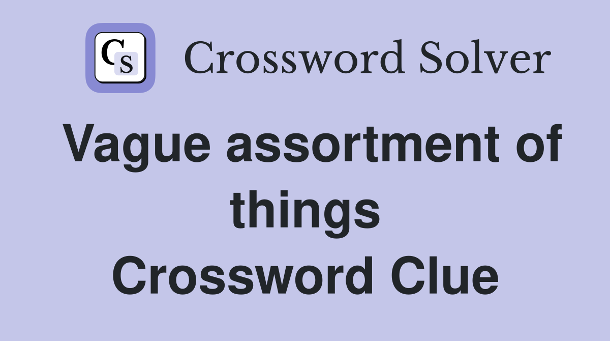 Vague assortment of things Crossword Clue Answers Crossword Solver