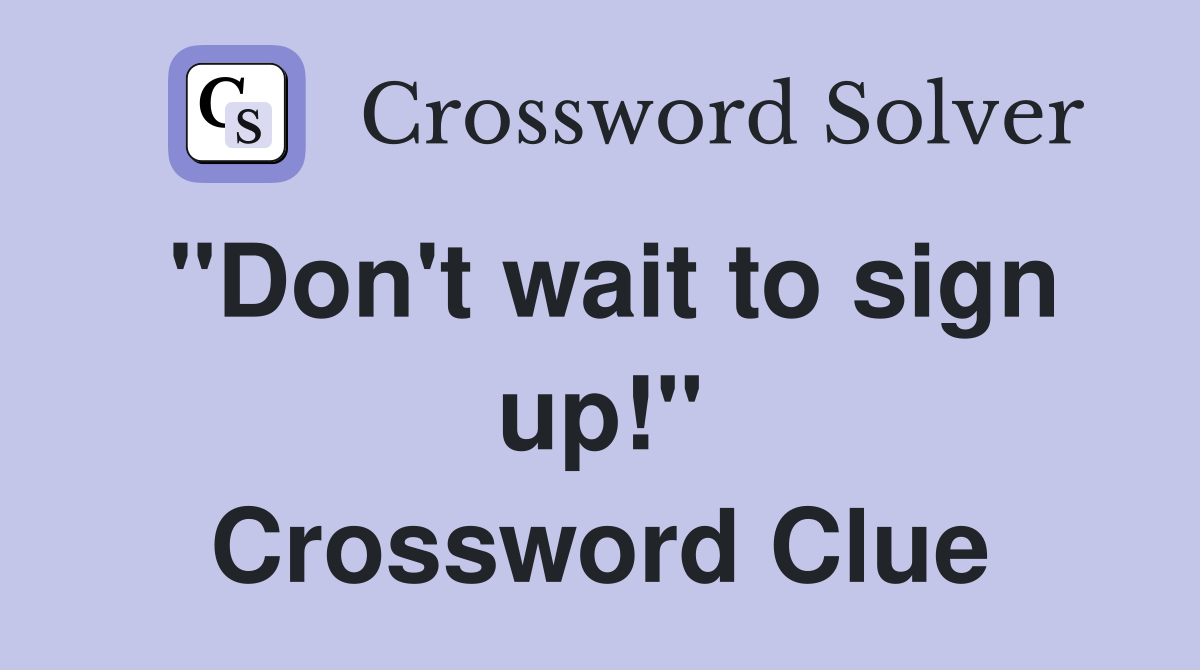 quot Don #39 t wait to sign up quot Crossword Clue Answers Crossword Solver